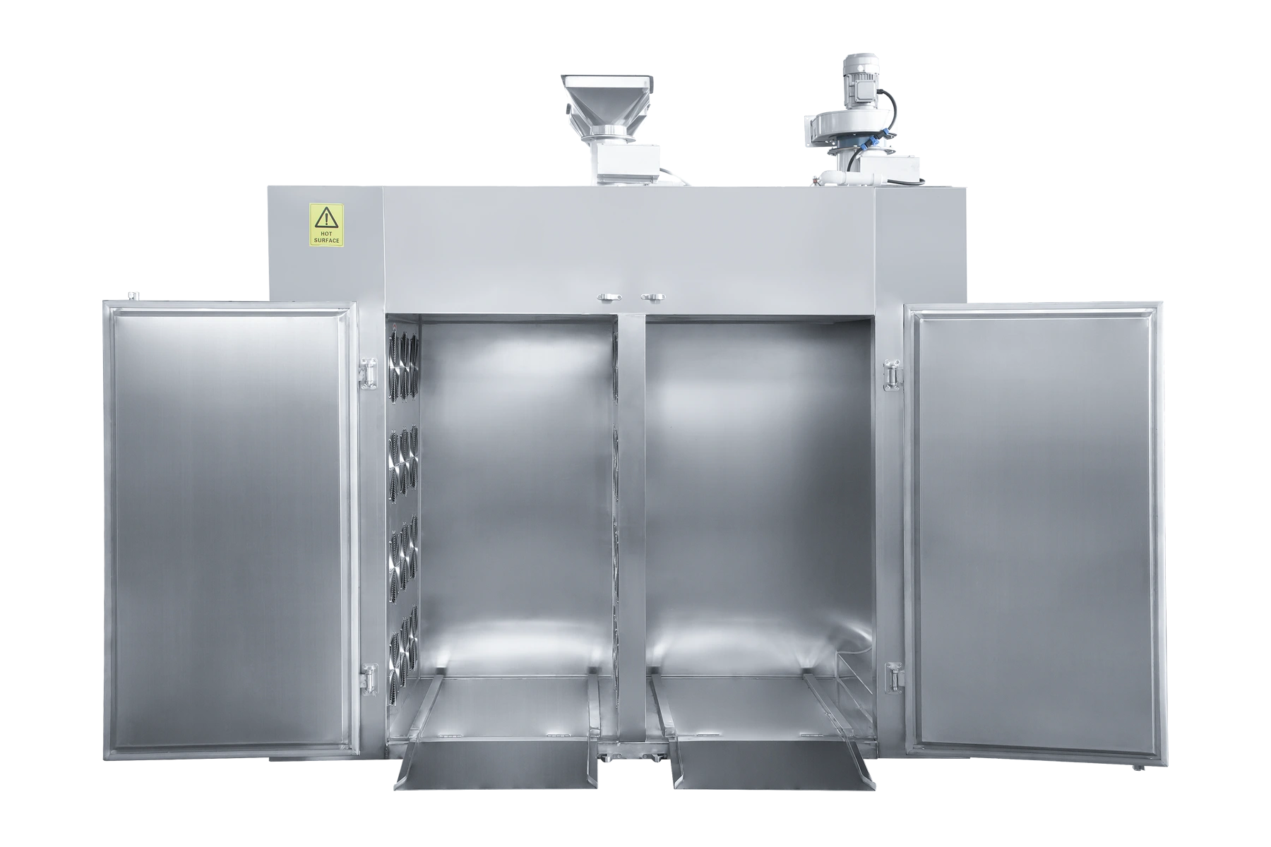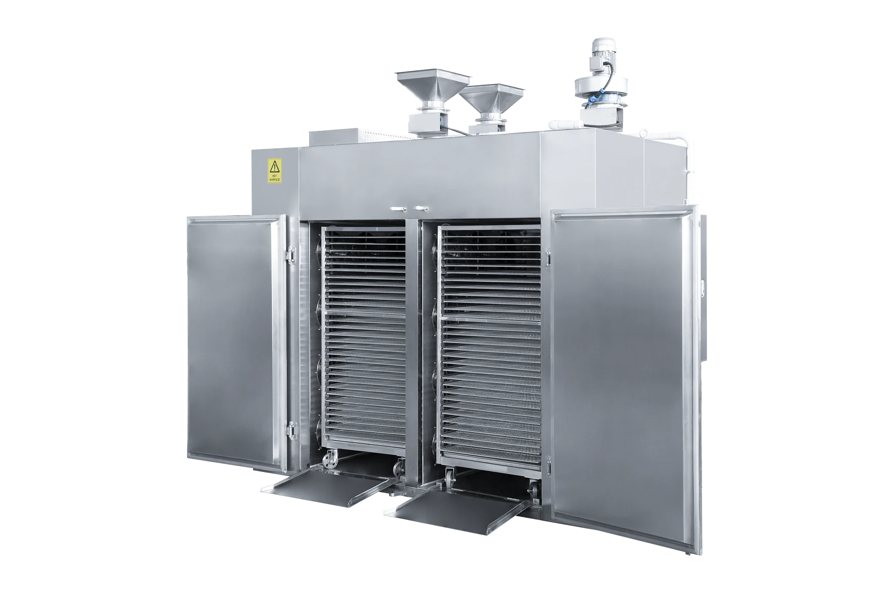 Industrial units include 30 trays per trolley by default. Units can be modified to fit more trays per trolley dependent on the thickness of your product.