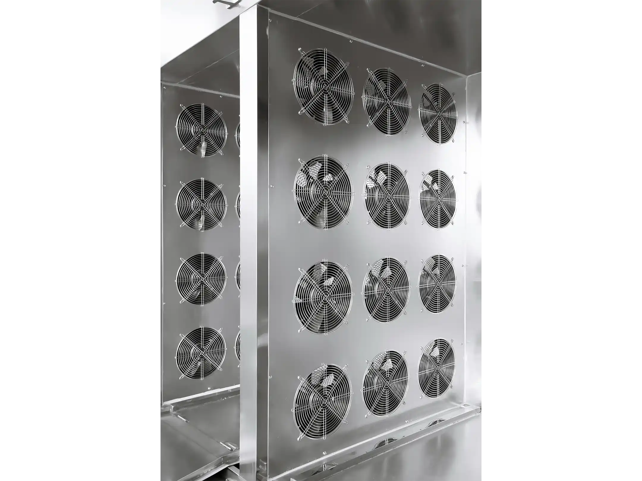Industrial units include 30 trays per trolley by default. Units can be modified to fit more trays per trolley dependent on the thickness of your product.