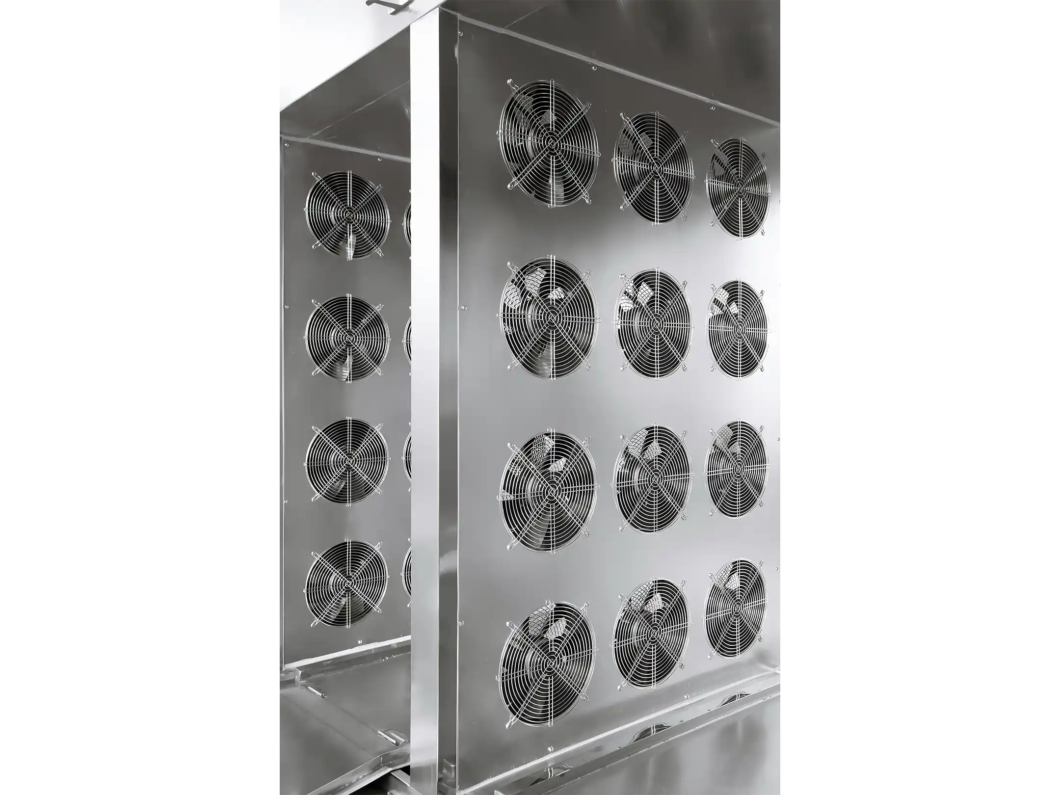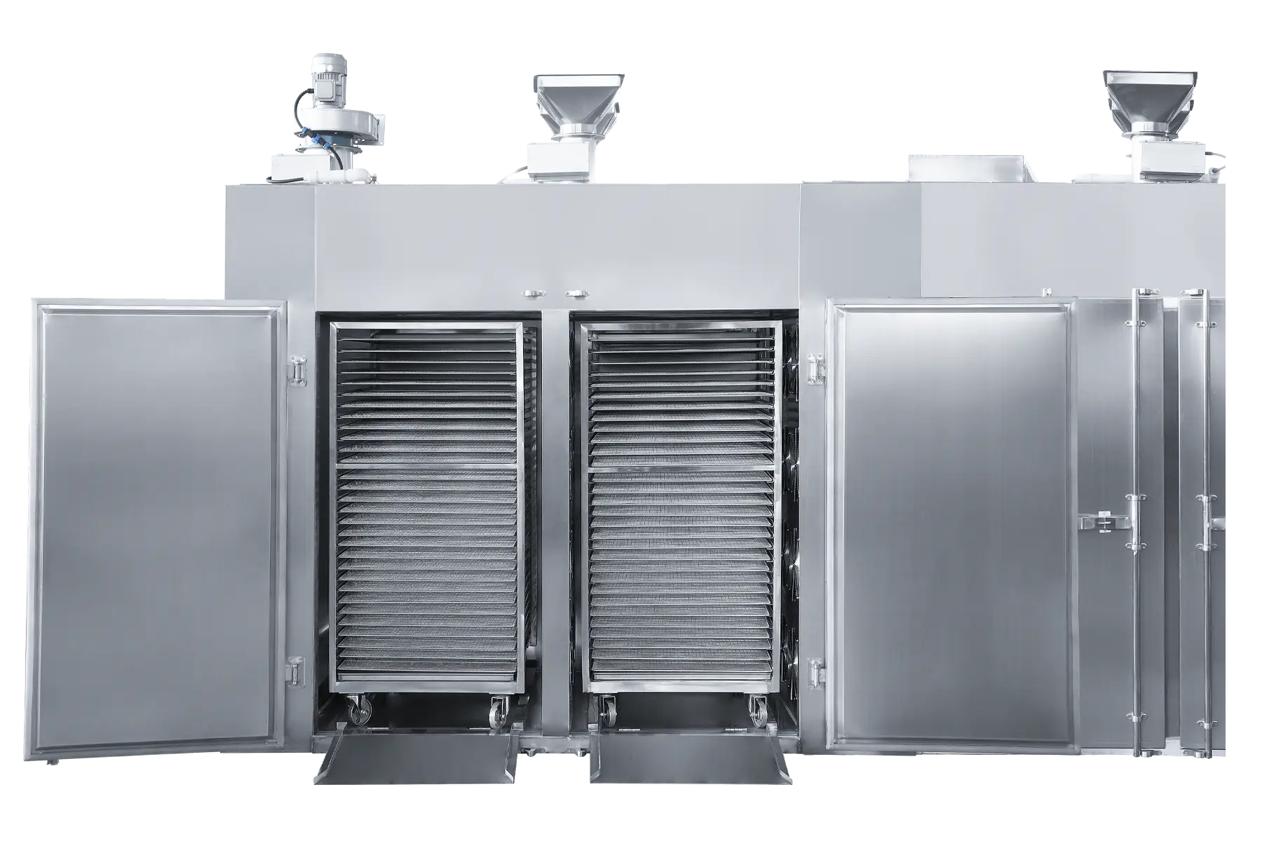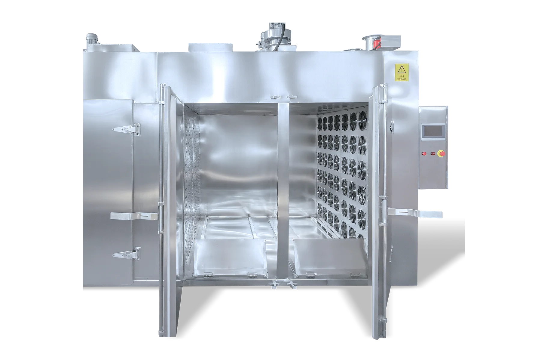 Industrial units include 30 trays per trolley by default. Units can be modified to fit more trays per trolley dependent on the thickness of your product.